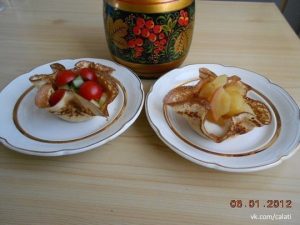 Следите, чтобы их не обжечь, и после охлаждения аккуратно снимите корзиночку. Она должна напоминать вафельный сухарик, поэтому важно делать их тонкими для удобства употребления.