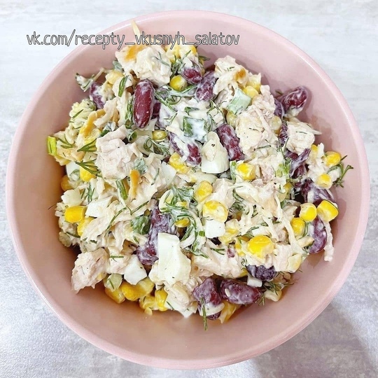 САЛАТ ИЗ КУРИНОГО ФИЛЕ И ФАСОЛИ