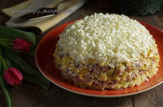 Картофель натрем на крупной терке, курицу нарежем кубиками, а яйца потерем на средней терке.
