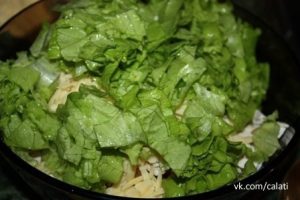 5. Мелко нарезаем салатные листья и выкладываем сверху.