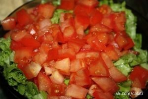 6. Нарезаем помидоры кубиками и добавляем их в салат.