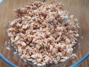 Эти салатные шарики по вкусу напоминают известный салат «Мимоза», так как состав ингредиентов практически тот же, но с некоторыми изменениями. Они получаются очень аппетитными и нежными, идеально подходят для праздничного стола. Сначала отварите картошку, морковь и яйца. Остудите и очистите их. Затем из горбуши слейте избыточную жидкость, поместите в bowl и измельчите вилкой.