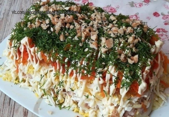 2. Салат укладывается слоями. Каждый слой слегка смазывается майонезом: