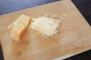3. Промойте листья салата и дайте им обсохнуть. Пока они сохнут, натрите пармезан на мелкой терке и нарежьте помидоры кружками.
