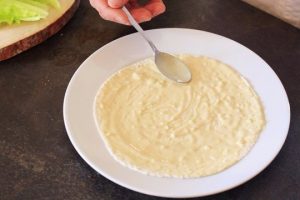 5. Приготовьте соус, смешав йогурт, горчицу и чеснок.
